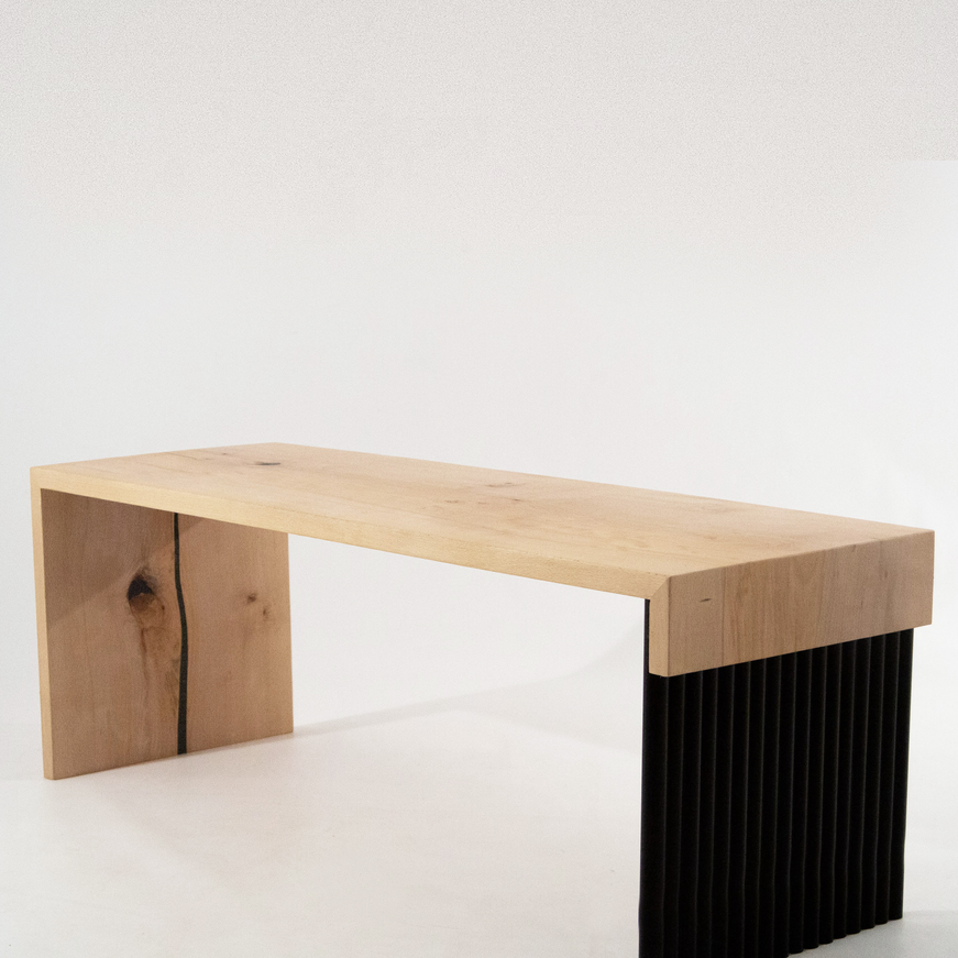 The Bennan Coffee Table features a sleek, monolithic design that brings timeless style and understated sophistication to any living room. The minimalist silhouette is elevated by a refined timber top, subtly accented with coloured dowels for a modern, architectural touch.